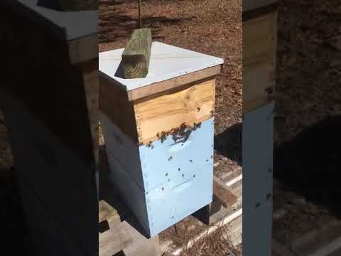Take a good look at the bottom right of the picture. The caramel colored bee with the tip of black on her butt is the Queen. She’s busy laying as you can clearly see in the uncovered cells at the top of the picture.